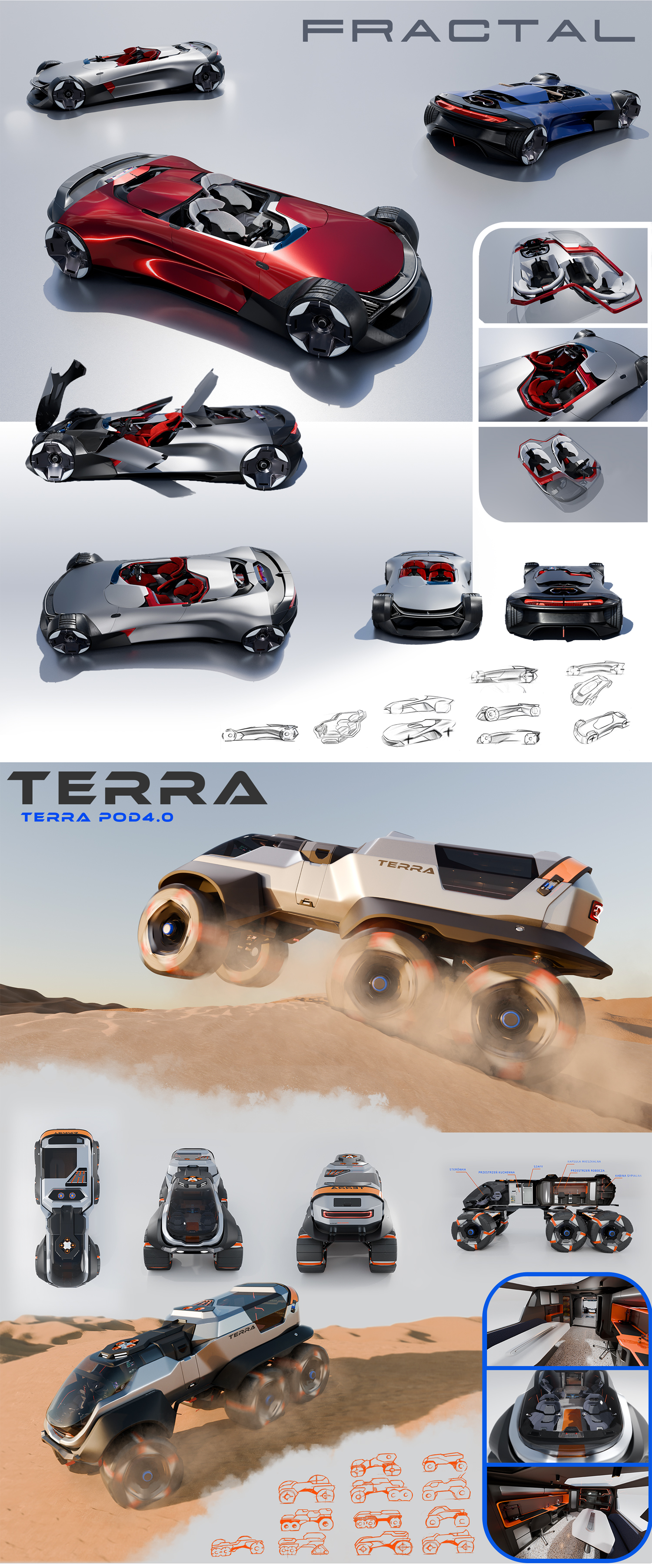 Projekt koncepcyjny (cyfrowy rysunek odręczny, modelowanie 3d)
